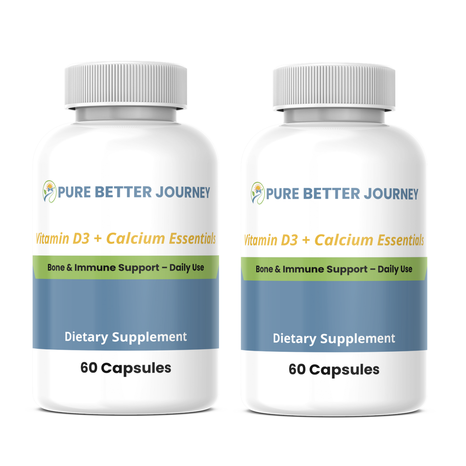 The Vitamin D3 + Calcium Essentials Value Pack combines two bottles of 60 capsules each, ensuring uninterrupted supplementation while saving on cost. Ideal for those committed to long-term bone health and immune support.